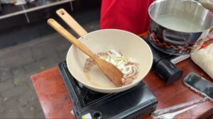 Masukkan jamur shitake dan kubis, tumis sampai harum.