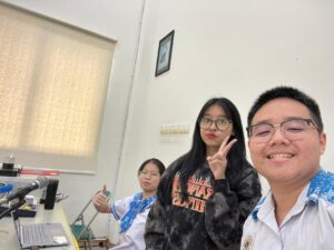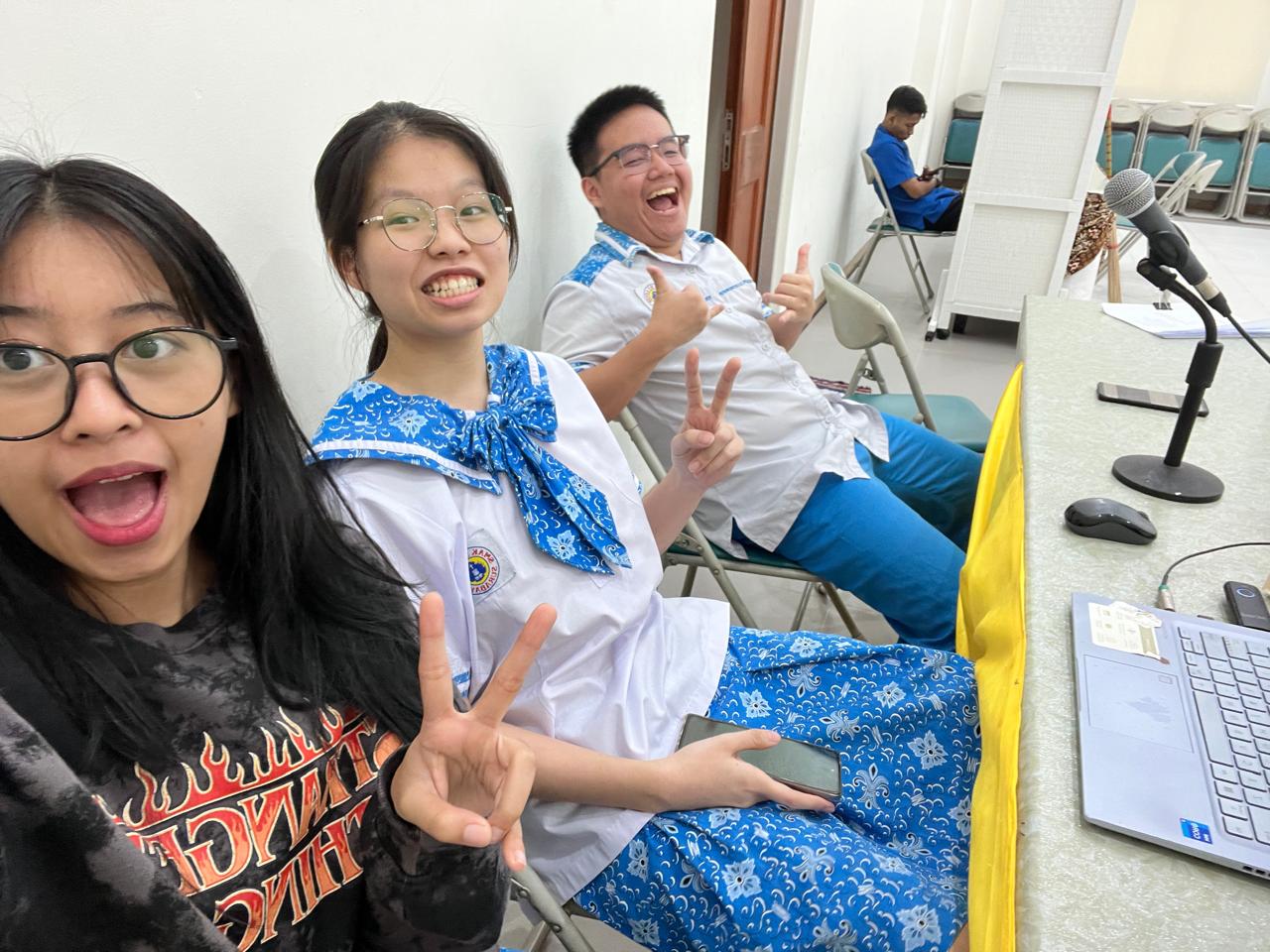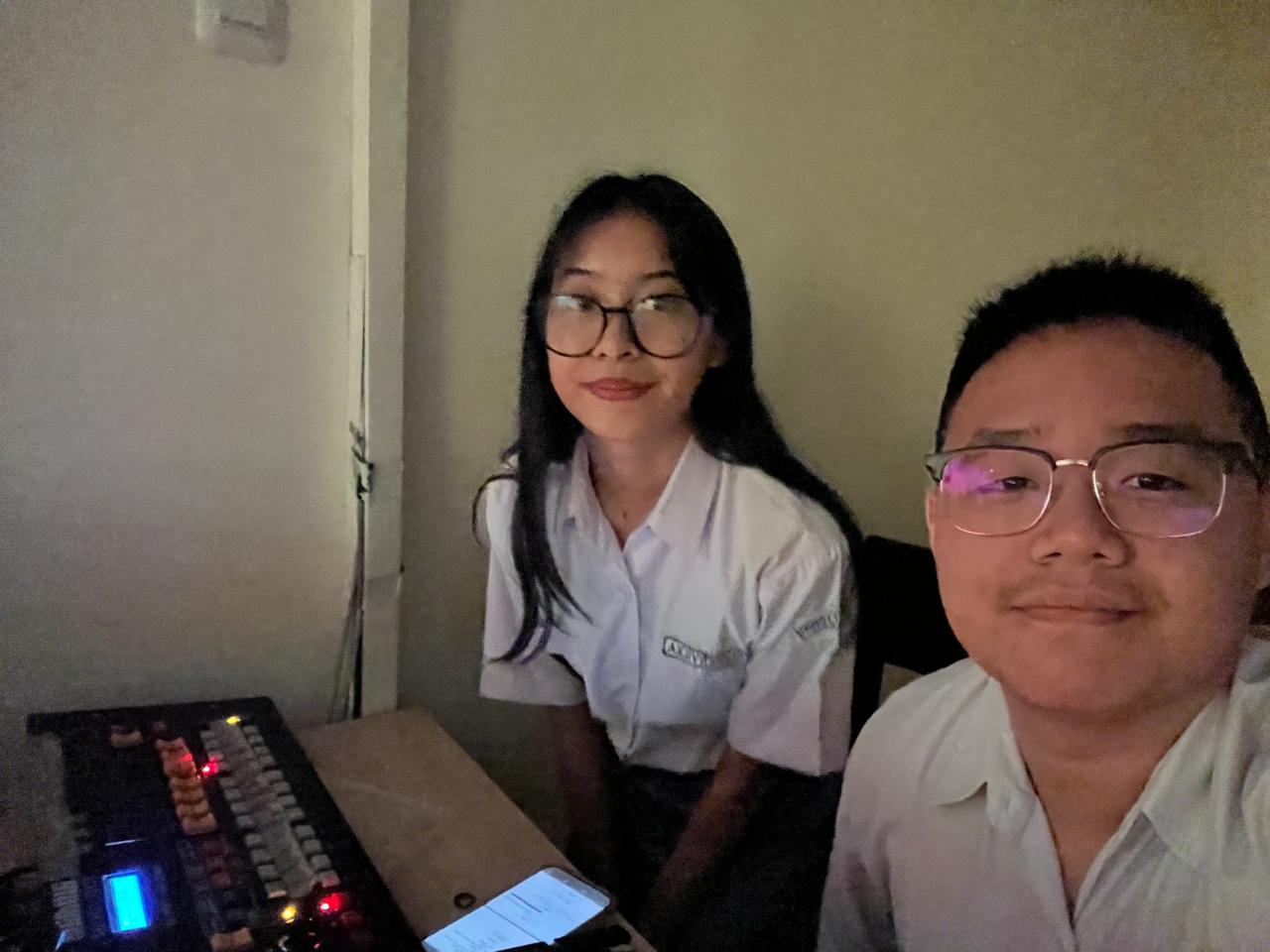 Ketika ujian praktik drama, saya mendapatkan tugas sebagai koordinator sie operator. Selain itu, saya juga diberi tanggung jawab khusus untuk memainkan spotlight dan saya juga membantu sie lighting untuk menentukan warna warna dan kapan munculnya warna dalam sebuah adegan. Pada awalnya, saya merasa bahwa memainkan spotlight merupakan tugas yang mudah karena saya kira akan dibantu oleh petugas saat tampil. Namun, kenyataannya memainkan spotlight jauh lebih sulit dari yang saya bayangkan. Saat latihan ujian praktik di studionya Keiko, saya hanya memainkan lampu di luar yang kami tandai sebagai spotlight. Namun, setelah beberapa kali latihan, saya merasa cara tersebut kurang efektif karena hanya menandakan kapan spotlight menyala dan mati, tetapi tidak membantu saya mengetahui posisi yang tepat untuk mengarahkan spotlight. Mendekati hari-H, saya dipinjamkan senter dari studio Keiko dan menggunakannya sebagai pengganti spotlight. Dari situ, saya mulai memahami ke mana spotlight harus diarahkan. Perlahan-lahan, saya mulai mengerti dan dapat mengoperasikan spotlight dengan lebih baik. Namun, saat gladi bersih, kenyataannya berbeda dari ekspektasi saya. Ternyata saya harus memainkan spotlight sendiri, dan spotlight yang saya pegang sempat tidak stabil karena tangan saya gemetar. Peristiwa tersebut membuat saya sangat down dan takut menghadapi ujian praktik pada hari-H. Oleh karena itu, sebelum hari-H, saya berlatih untuk menstabilkan tangan agar tidak gemetar saat memegang spotlight. Pada hari-H, saya masih merasa takut dan panik. Namun, ada petugas yang membantu saya mengatur spotlight sehingga saya merasa lebih tenang. Dari ujian praktek ini, saya merasa bangga karena dari awal yang saya gemetar menggunakan spotlight, menjadi bisa menggunakan spotlight dengan stabil. Selain itu, saya juga merasa senang karena hasil dari lighting menjadi sangat bagus dan melebihi ekspektasiku.