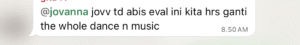 Saya sempat merasa sedikit down, karena koreo yang telah dibuat oleh Cheryl, Gita, dan saya sendiri sudah hampir selesai, hanya perlu membuat formasi dan mengisi beberapa bagian yang masih kosong. Kami bertiga juga sudah mengajarkan koreo nya kepada anak-anak lain dan proses itu cukup rumit. Saya merasa kerja keras kami sia-sia karena harus diubah total, dan saya juga merasa tidak enak kepada anak-anak lain yang sudah berusaha dengan sangat baik untuk mengikuti choreo nya. Walaupun mereka tidak bisa atau tidak pernah nari, mereka berlatih dengan semangat agar bisa mengikutinya dengan baik.