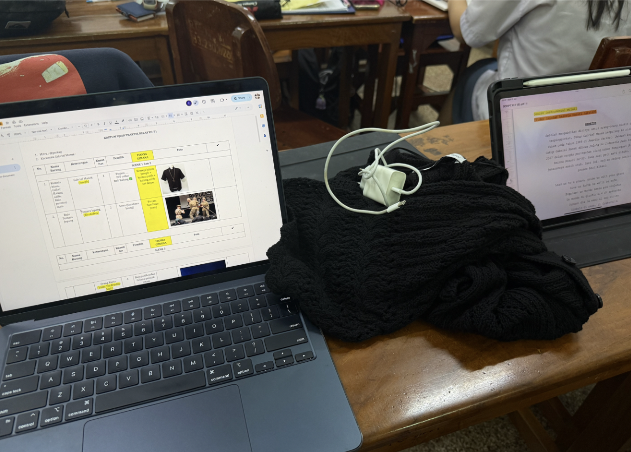 Setelah ada pergantian skrip, kami dari sie costume langsung duduk bareng lagi buat mengurutkan ulang semuanya di rapat dan menyesuaikan peran tokoh sesuai scene masing-masing. Kami mulai dari scene 1 sampai 10, sambil mencatat siapa saja tokoh yang muncul di tiap bagian dan membahas kira-kira kostumnya harus seperti apa. Dari situ, kami juga kepikiran mana yang bisa dibuat sendiri (DIY) dan mana yang lebih masuk akal untuk dipinjam, termasuk harus pinjam ke siapa. Prosesnya cukup bikin mikir, tapi justru seru karena pelan-pelan semuanya mulai kelihatan lebih jelas dan terarah