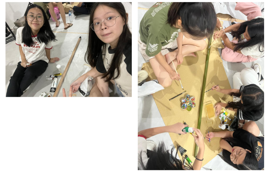 Hari ini di sela-sela latihan bersama kelas di Cortez Studio, sie dekorasi mengerjakan pembuatan properti bambu yang akan digunakan dalam scene warga. Kami berusaha agar properti tersebut dari kejauhan terlihat menyerupai bambu asli dengan memainkan bayangan serta gradasi warna hijau, kuning, dan cokelat. Proses pengecatan dilakukan bersama-sama dengan membagi tugas pada tiap bagian agar pengerjaannya bisa lebih cepat. Hasilnya, properti bambu dapat diselesaikan dengan baik dan memberikan rasa puas karena kerja sama tim yang solid serta hasil yang sesuai dengan konsep yang diinginkan.