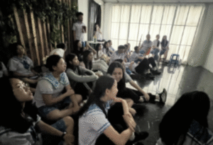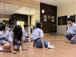 Dalam 1 minggu, setiap kelas diberi jadwal untuk berlatih di 3 tempat besar yaitu Vincentius Hall, Francis Room, dan Lazarin Hall. Pada hari itu, kelas saya berlatih di V-hall. Kami fokuskan latiahn tersebut dalam detailing menari.