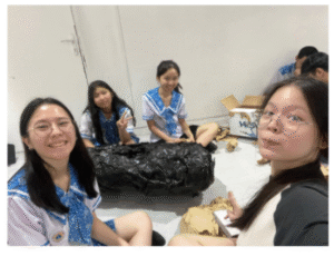Hari ini setelah pulang sekolah, kami melanjutkan kegiatan di Cortez Studio. Di sana, sie dekorasi kembali mengerjakan properti goa dengan merapikan bentuknya agar terlihat lebih menyatu, lalu melakukan pengecatan menggunakan piloks hitam untuk memperkuat kesan gelap dan realistis.